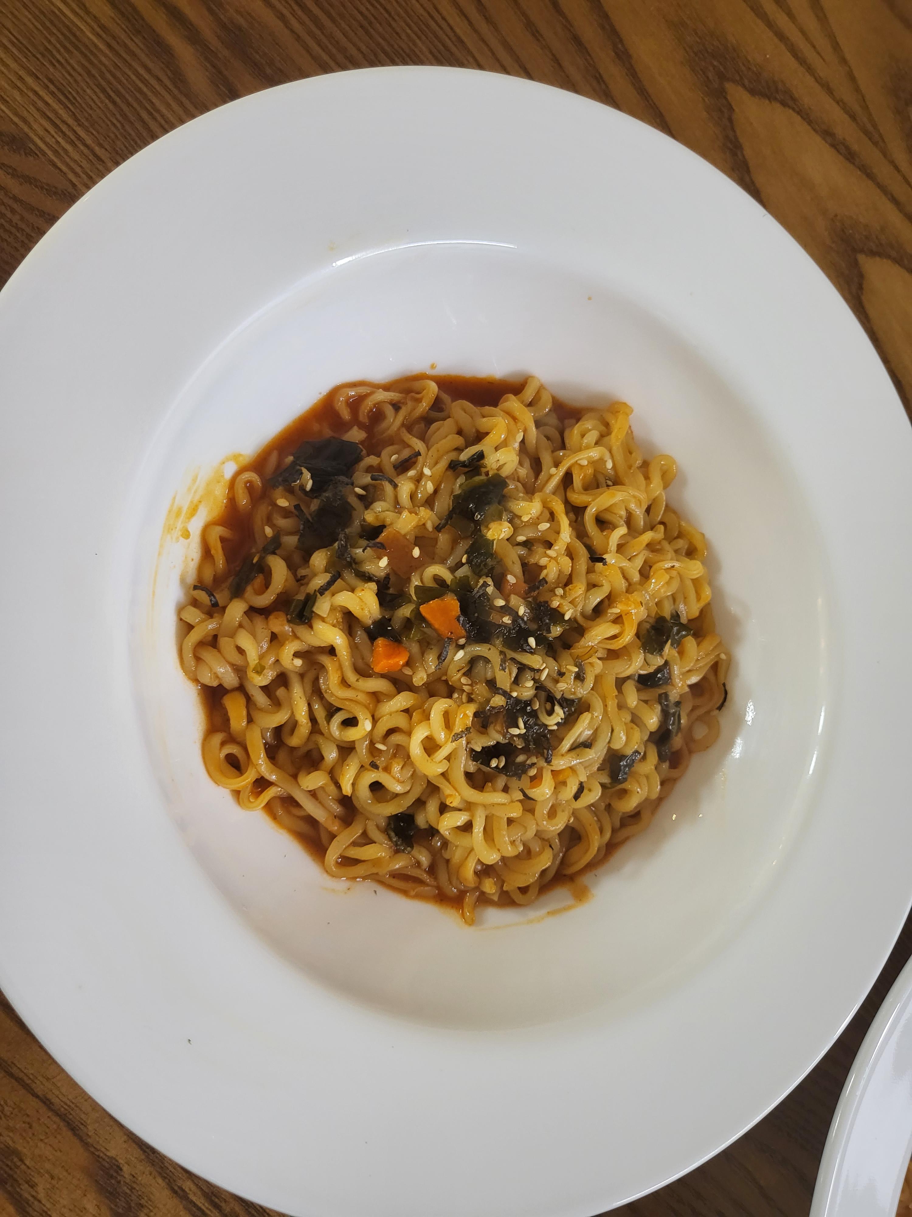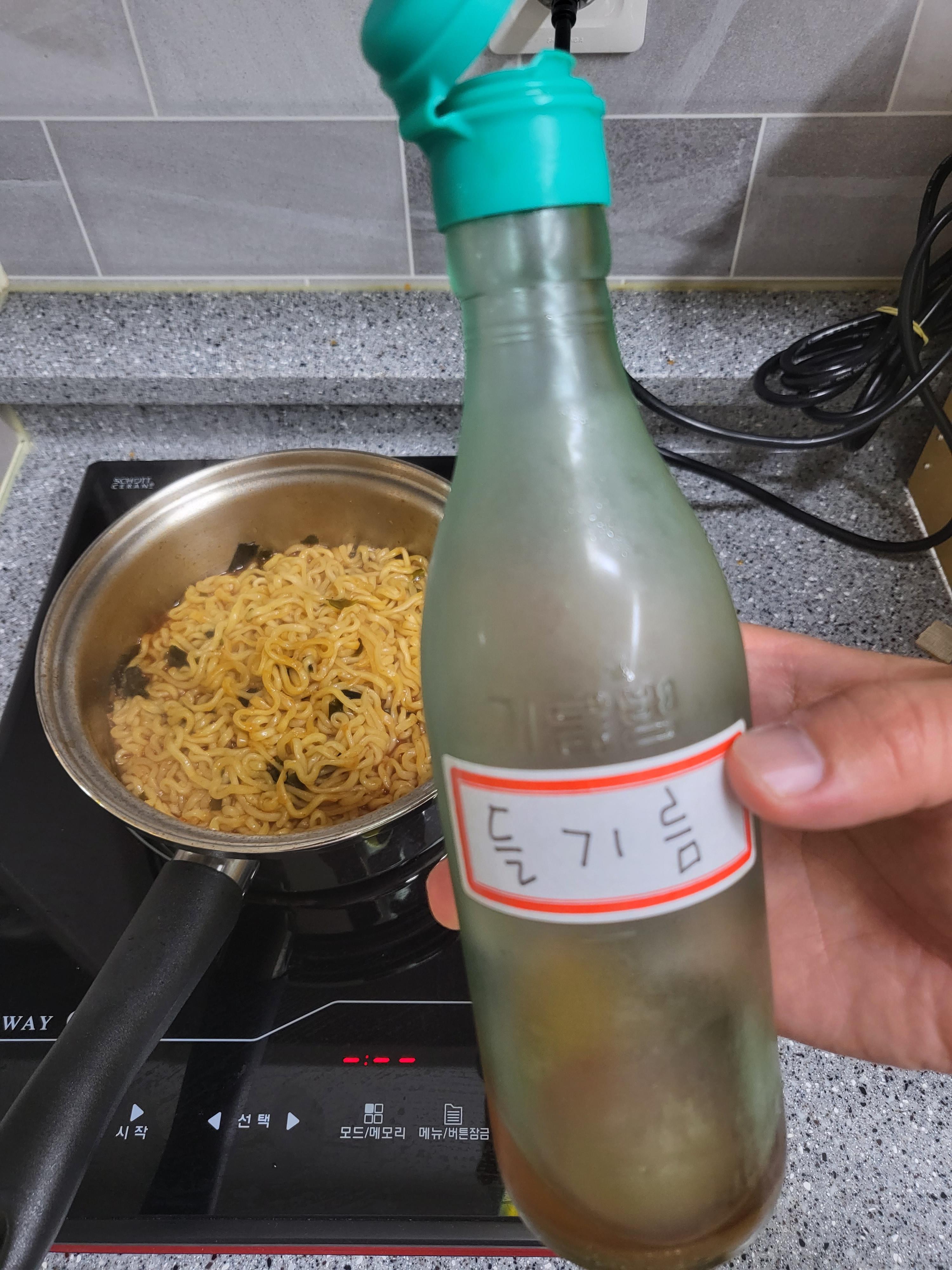 First of all, I combined 2 ramen noodles and cooked them, and the amount of ramen was so large that I didn't think I could eat them alone. However, if you like bibi noodles, I think you will find it a good idea. And at the end, perilla oil is added, which is not an option, but a necessity.